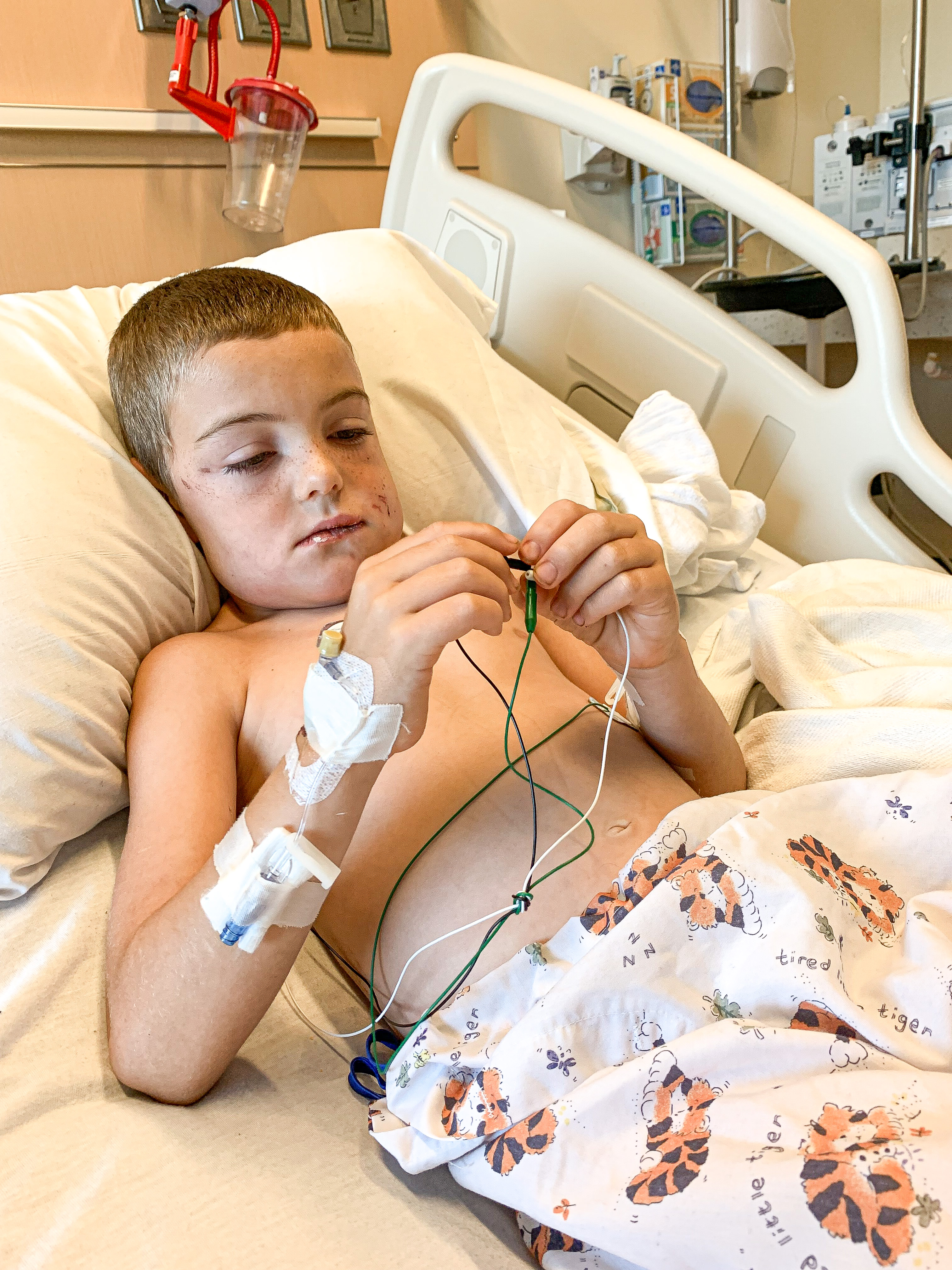 That following Tuesday, four days after his accident, E went into surgery to add hardware- plates, screws and wires to his jaw. Eight weeks later we would have another surgery to remove all of the hardware, so that his young bones could expand and grow with him. Those five days in the hospital where some of the hardest as we grieved the sense of control we had previously enjoyed, thinking we could protect our child from any kind of accident, especially one that could’ve taken his life. The overwhelming grief and fear as we came so close to loosing little Easton, but also the overwhelming gratitude/thankfulness for still having our son with us. Between the overwhelming emotions, tests, and conversations with doctors, those 5 days where some of the longest days of my life.