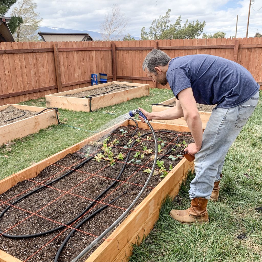 We added a Simple DIY privacy fence around our raised bed garden to keep out the local rabbit and squirrel population. When we bought our house the smaller backyard fence already had slats installed, which also helps keep the rodents from squeezing through or climbing over the fence and getting to our fruit trees.