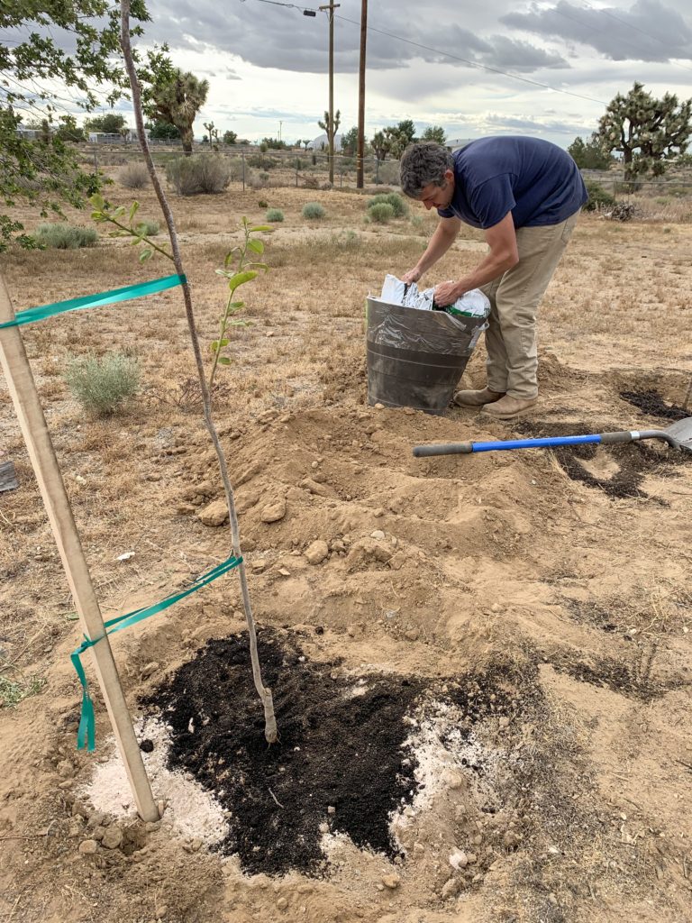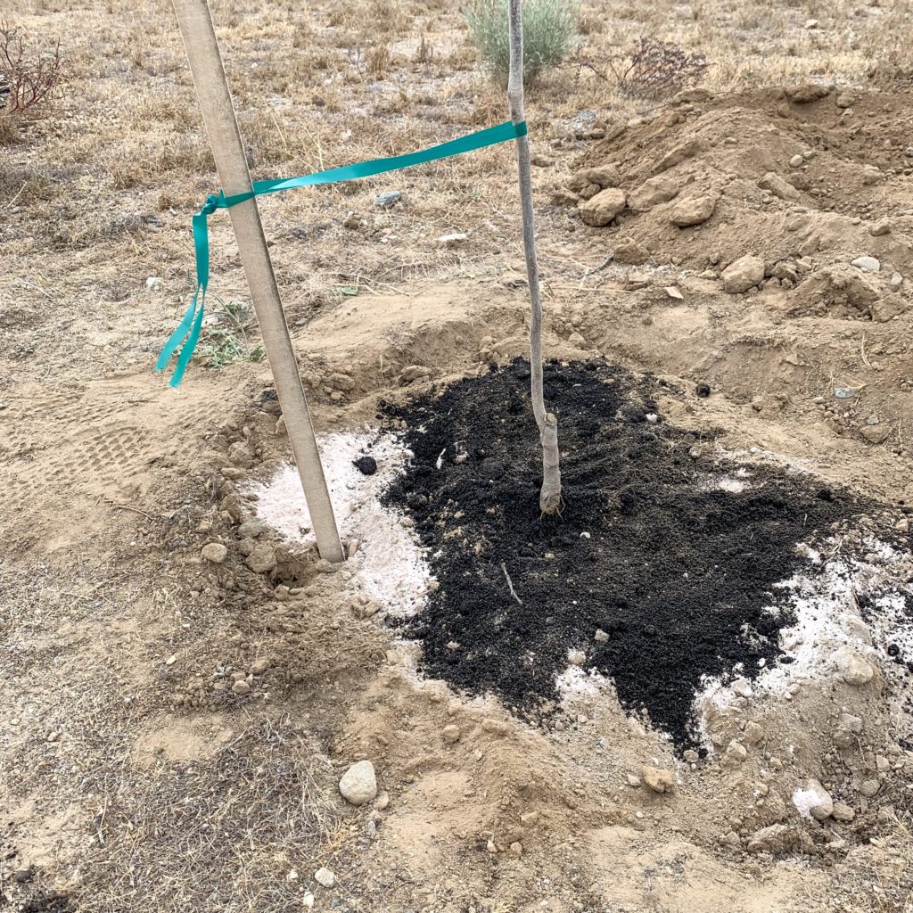 With leftover dirt make a well or berm around the trees drip line(Furthest tree branches). You’ll want to water your tree right away with 4 times the amount of water then the pot it came in. For example, if your tree came in a 5 gallon pot, then it needs 20 gallons of water. We also like to add 1 oz of Neptune’s Harvest FS191 Hydrolized Fish & Seaweed at the time of watering.