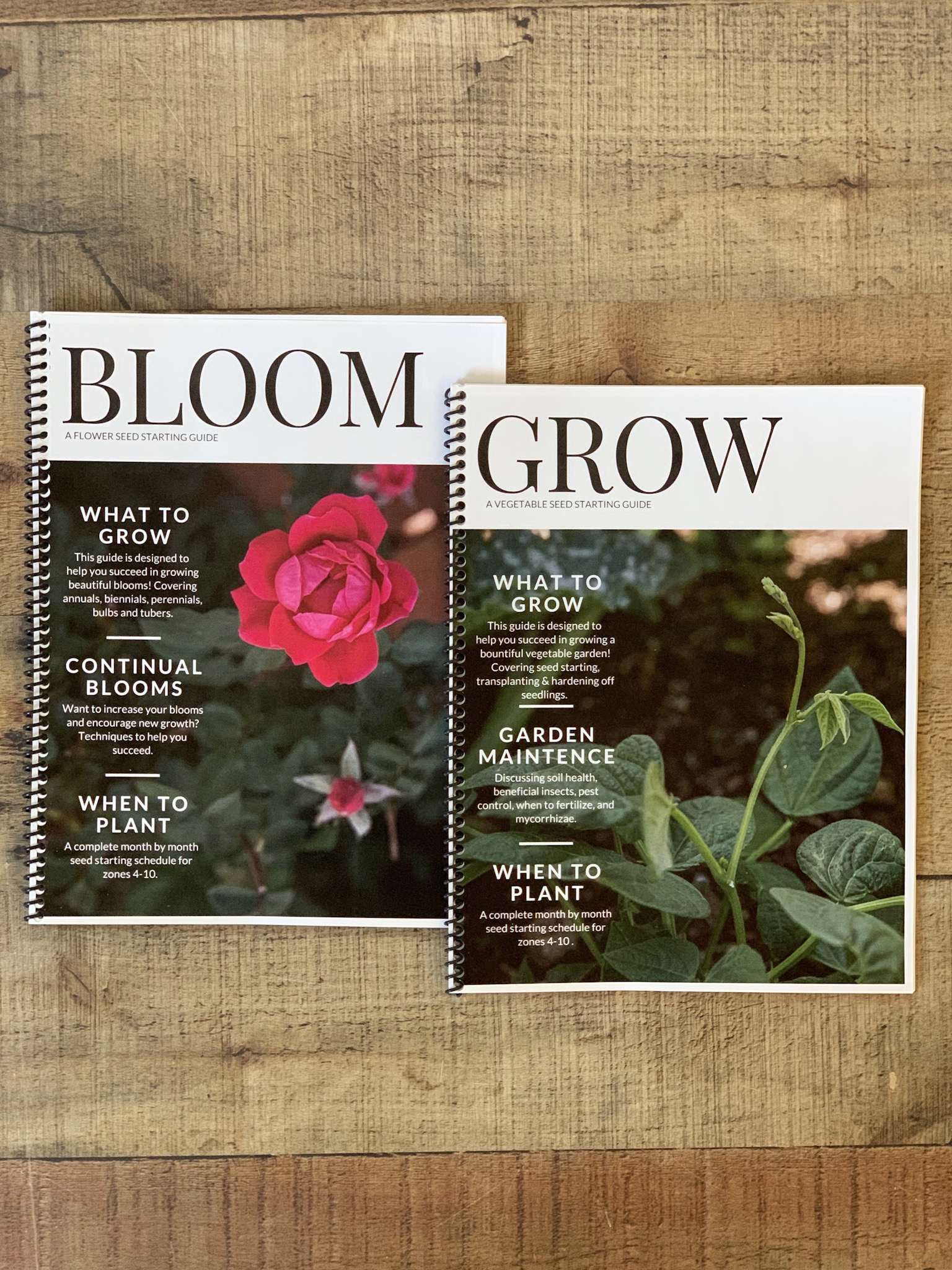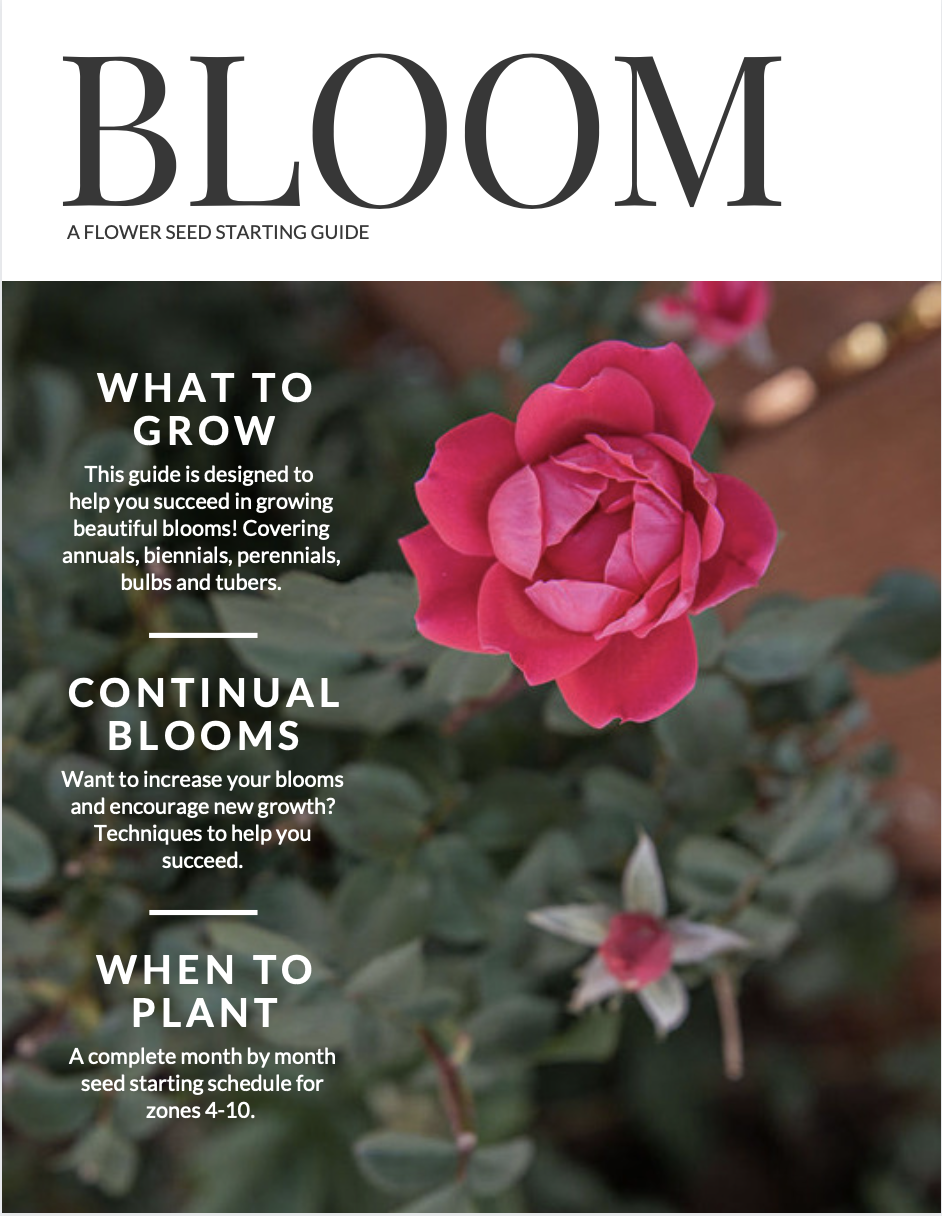 These guides are designed to help you determine which seeds to start indoors, which to direct sow outside, and a timeline for both. I’ve included a comprehensive list of seed sowing directions specific to each growing zone (4-10), templates to help you keep track of your garden month by month, tips and tricks to help you succeed, and important gardening basics. Bloom & Grow work hand in hand, providing you with a wealth of knowledge, and techniques, to help you succeed.