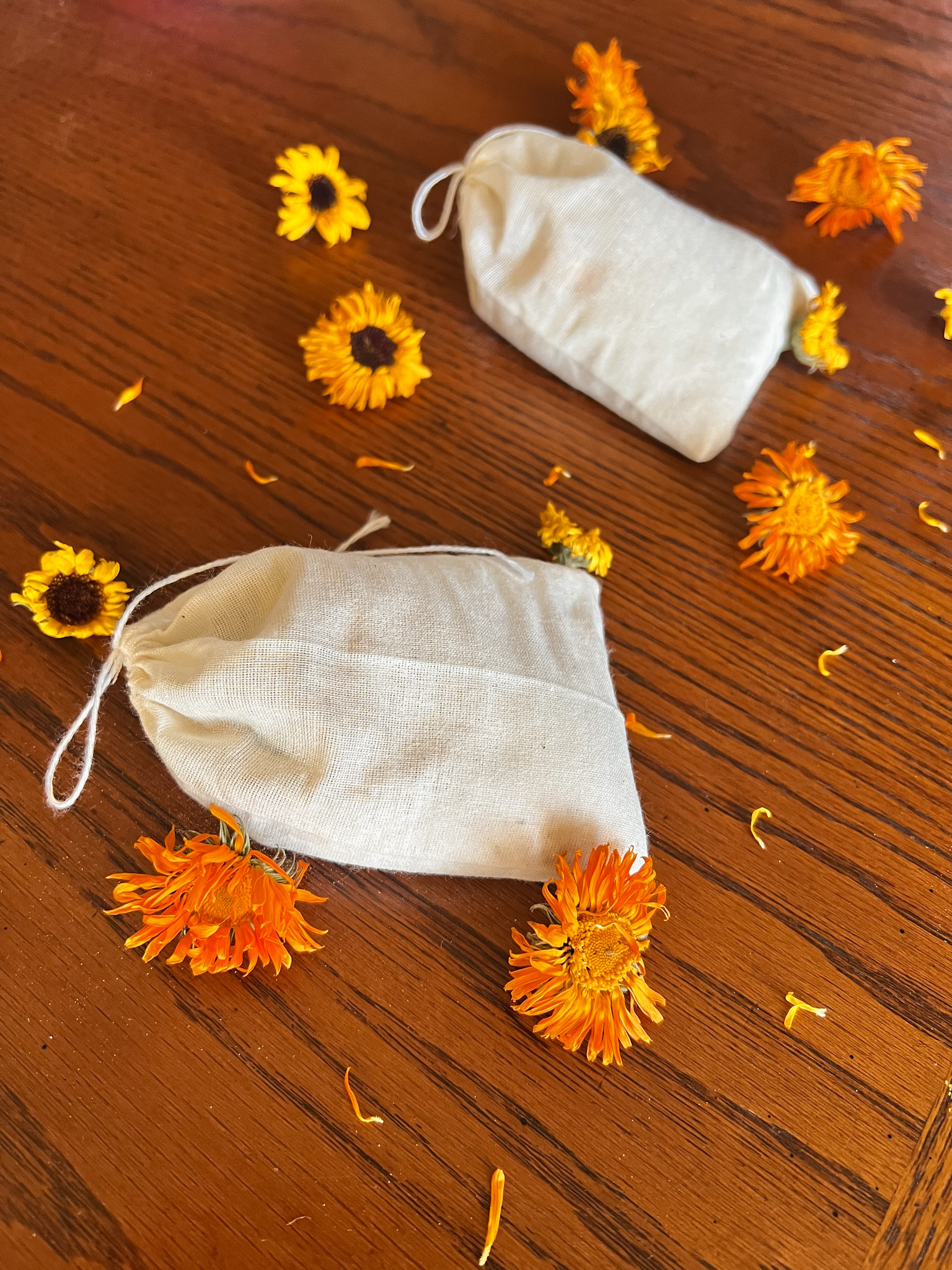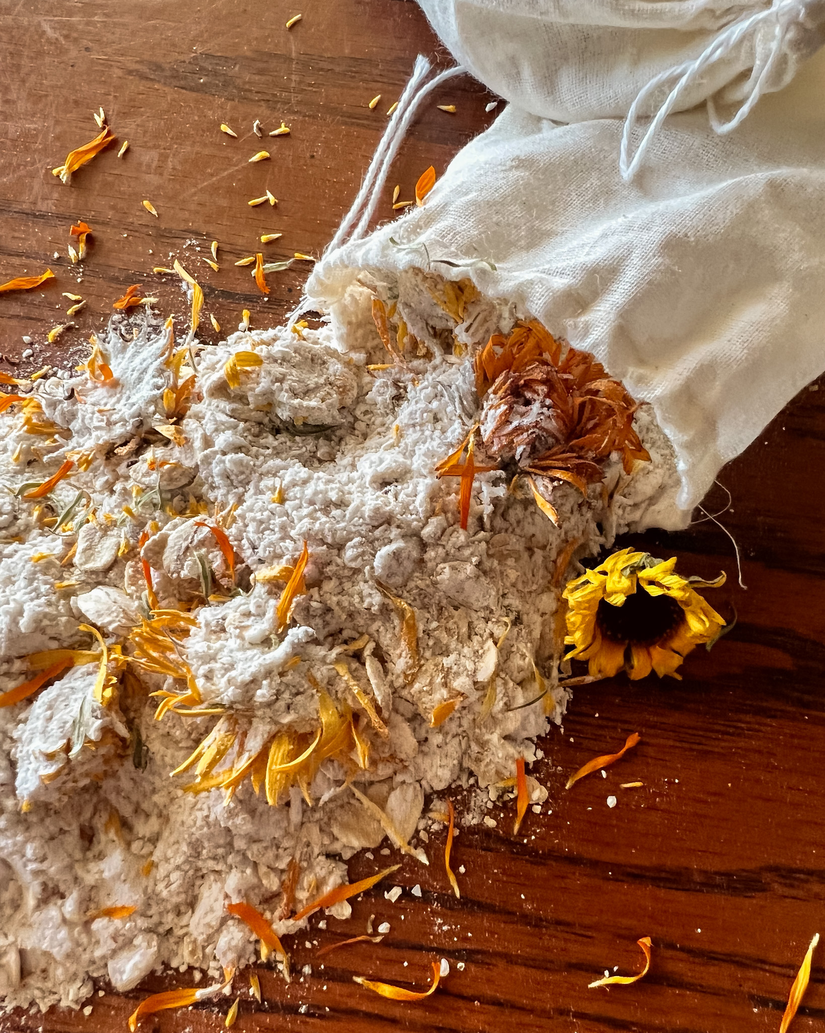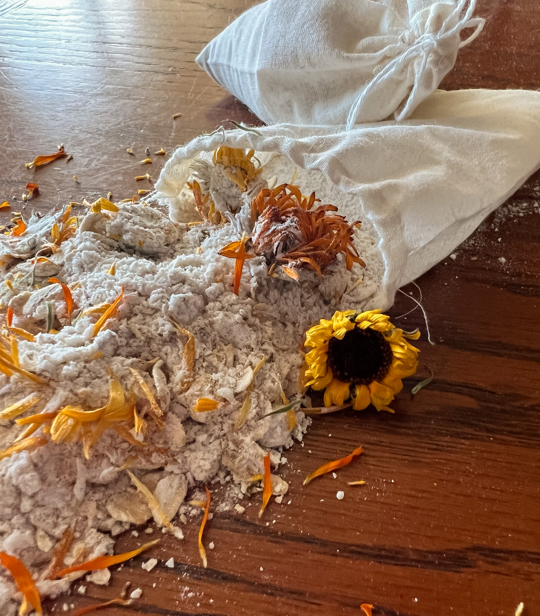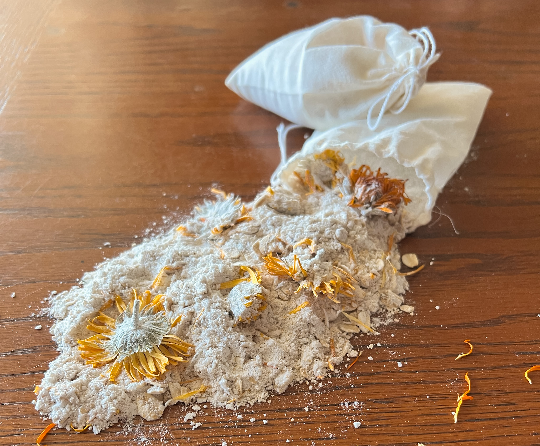 Ingredients: Homegrown Organic Calendula, Lavender, Oatmeal & Baking Soda.