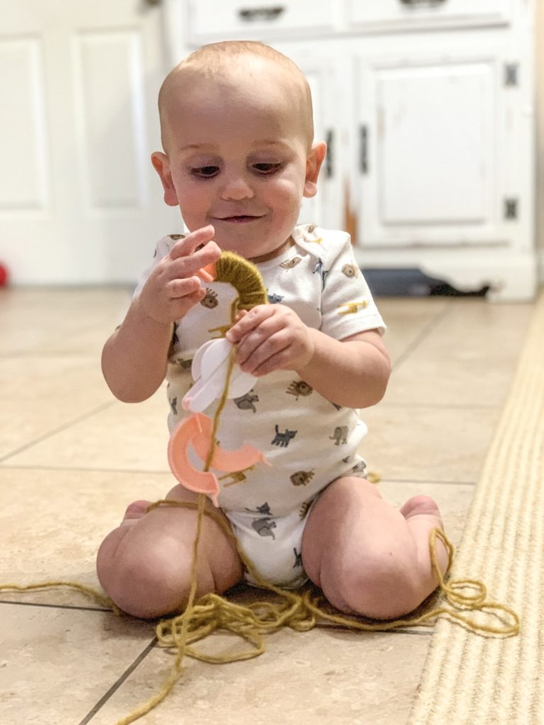 We had so much fun making our wreath and couldn’t stop talking about how soft the yarn was. Laila and Easton both learned how to make different size pom pom’s and towards the end they didn’t need much of mommies help. Aspen even helped with the tight tension as he kept running away with the bundles of yarn.